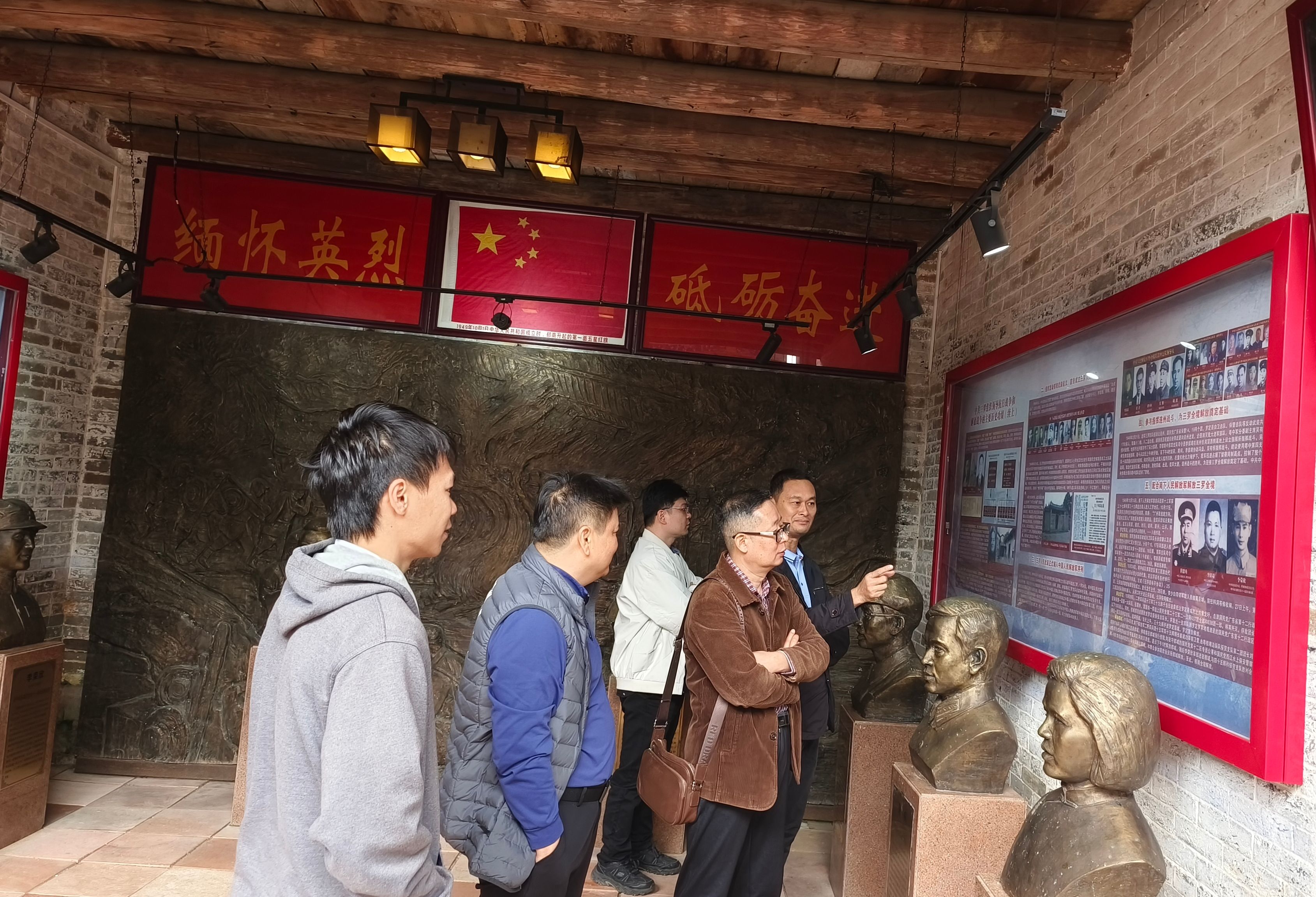 在三罗中心县委旧址(郁南桂河革命纪念馆),支部成员详细了解了潘祖岳等革命先辈以“永绪堂” 为据点,开展抗日救亡、发展地下党组织、组建游击武装的历史事迹;通过展厅史料、烈士铜像与实物展陈,深入了解了 “三罗地区抗日武装起义”“游击根据地创建” 等红色历程,真切感受到革命先辈在艰苦环境中的坚定信仰。随后参观了龙岗村的古树群、古村道,学习“红色、古色、绿色”三色乡村振兴新路径。